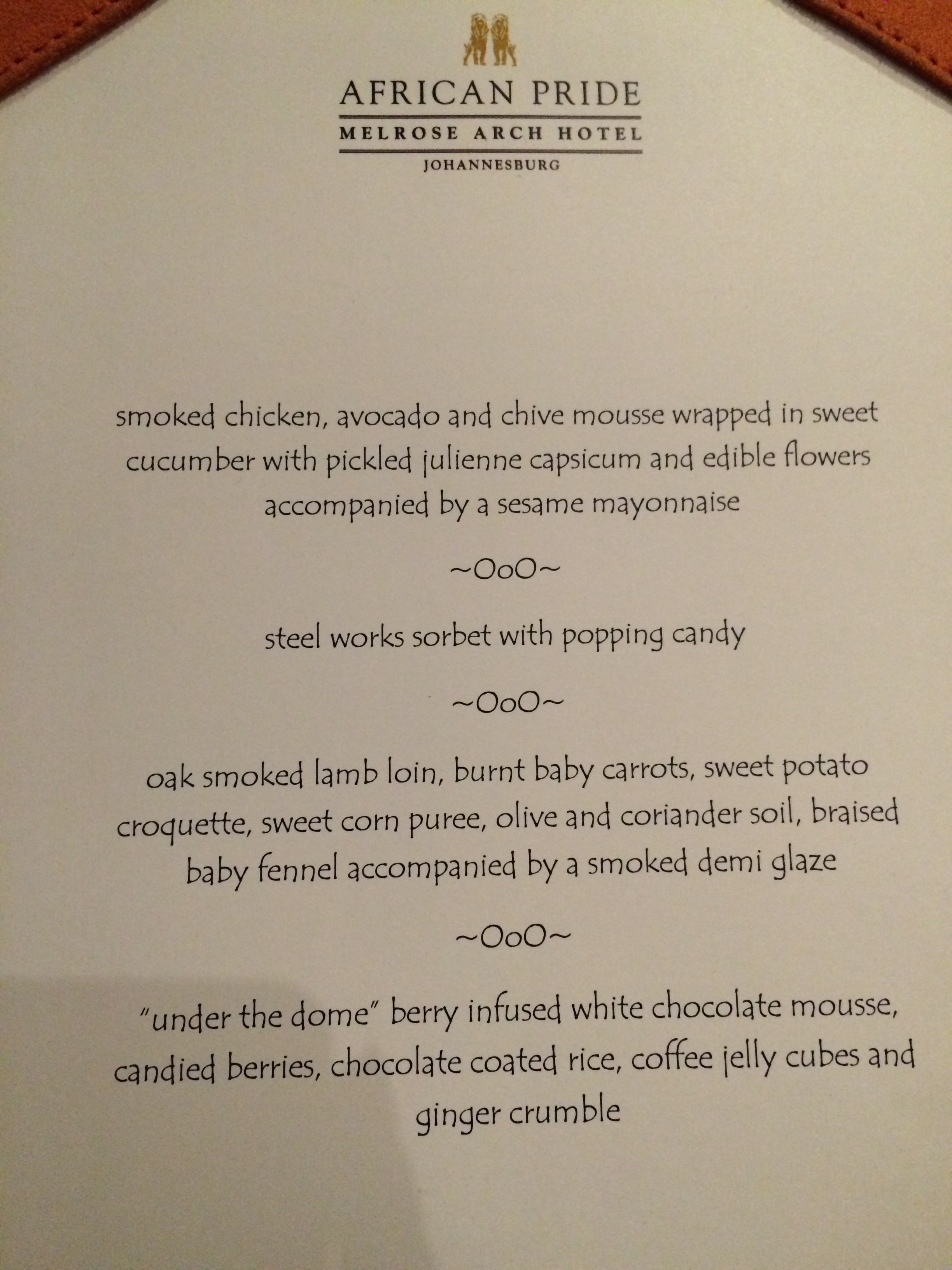 The Melrose Arch Hotel, which opened in 2003 and has 118 rooms, offers the usual conference and meeting venues, impeccably decorated with original artwork, and here’s what makes it different from other hotels, it also has a 60 seater mini movie theatre, which, we were told is very popular indeed. I’d say that the stylish, understated elegance of the place, combined with its trademark Davidoff Cool Water smell, is what will win most people over.