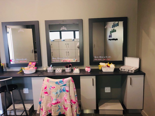 I was impressed by the size of the spa and salon. Even though there are no pools, saunas and steam rooms, the uniqueness lies in the fact that it is divided into two sections: one for kids and one for adults. The idea is that you can book your kids for a mini spa pampering and activities in the Kids Spa while you relax and rejuvenate in the Adults only section. The sections are completely separate as well. Fatima and her team can arrange kiddie birthday parties, pyjamas parties, bridal showers, baby showers etc. and can accommodate up to 40 adults or children in the large space. Have a look at the photos below to get an idea of the space available.