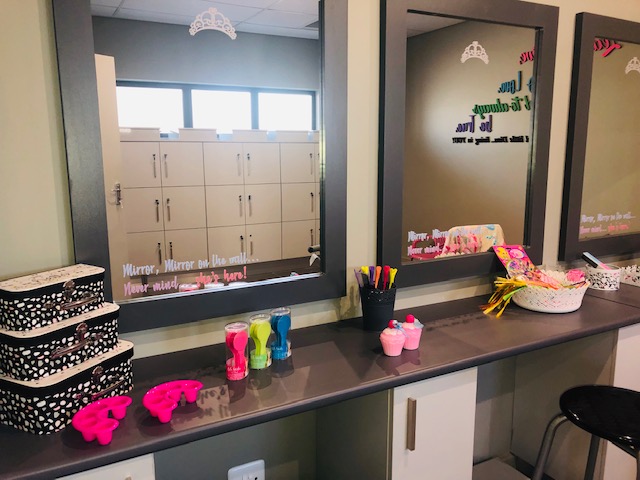 Another angle of the kids hair styling station.