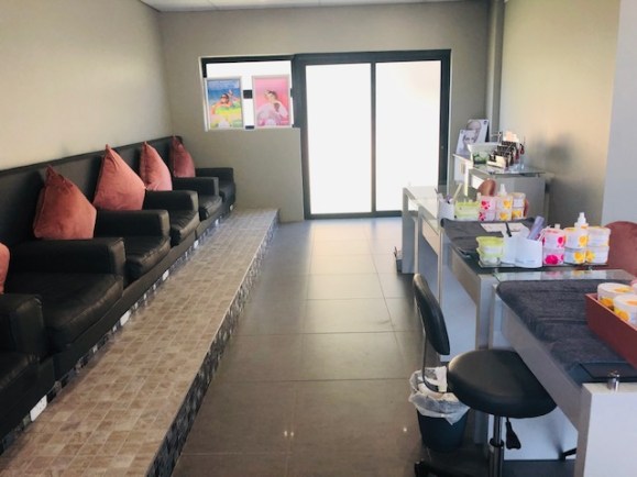 Kids play area and pedicure stations overlooking the manicure area.