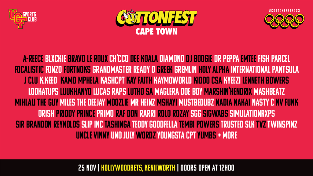 Full Cotton Fest Cape Town Lineup includes: