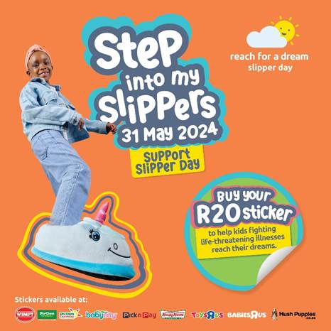 Since its inauguration in 2011, Slipper Day has become a nationwide movement where everyone from office workers to school children band together to make dreams come true for children with critical diseases like cancer, renal failure, and heart conditions, simply by buying a R20 sticker and wearing it with their slippers on the day.