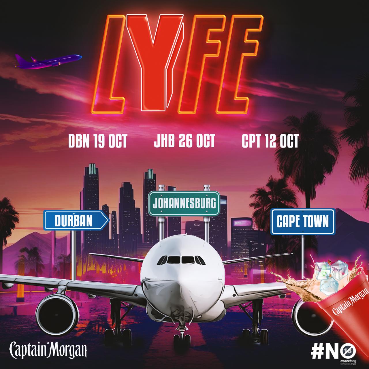 Y, SA’s premier youth radio station has always ignited the summer season in style. This year is no different, LYFE – the most highly anticipated event of the year is about to spice things up with Captain Morgan by throwing not one, not two, but three parties… that are larger than LYFE. This music experience goes on tour in October 2024.