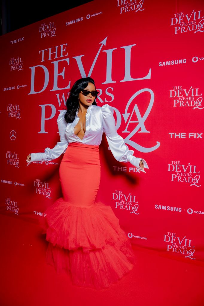 Guests embraced bold silhouettes, elevated couture-inspired looks, and statement-making glamour as they entered through one of the evening’s most talked-about installations: the iconic life-size red stiletto from the film’s global press tour. Hosted by the ever-stylish Pamela Mtanga, the activation transformed arrivals into their own red-carpet fashion moments.